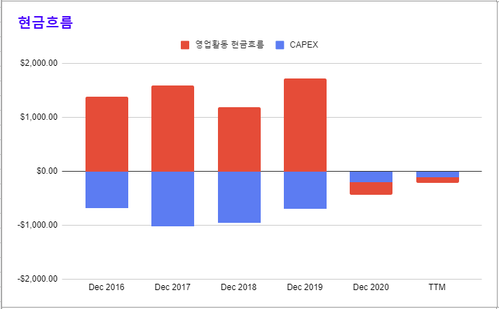 * 코로나 이전까지만 해도 잉여현금흐름이 꾸준히 발생했었다.