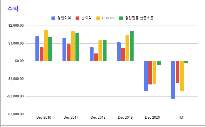 * 코로나 대유행이 있던 20년은 13억 2,400만 달러의 적자가 발생했다.