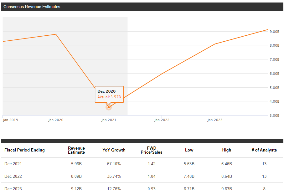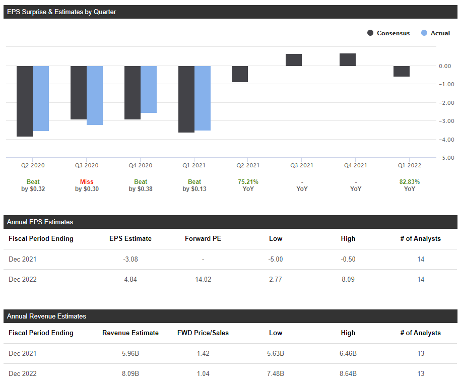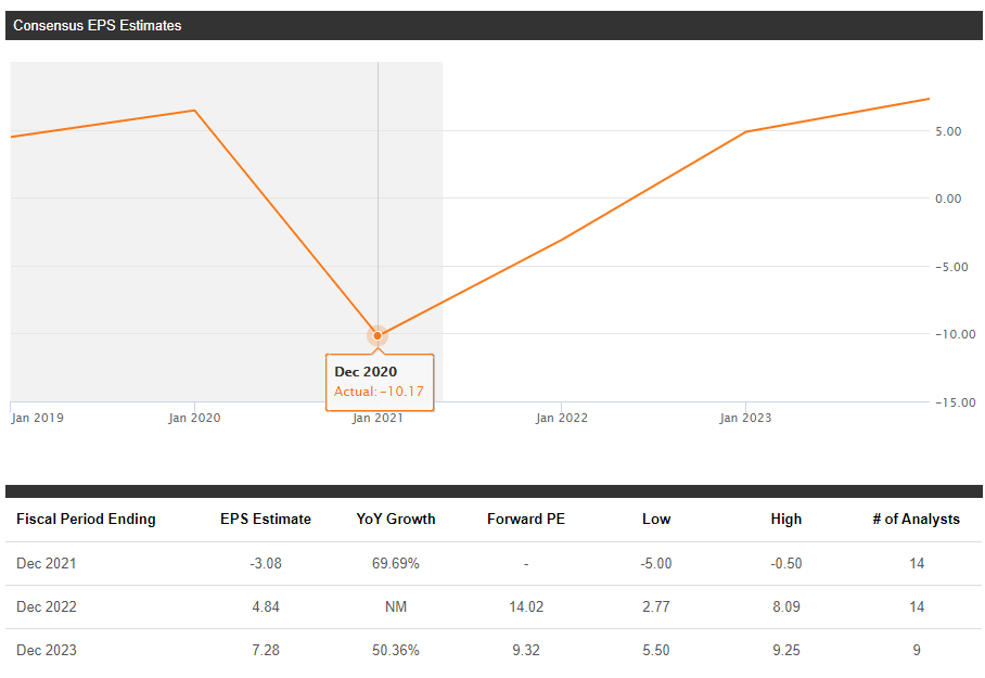 * 14명의 애널리스트들은 올해 실적은 전년대비 EPS 69.69% 증가하고, 매출은 67.10% 증가할 것이라고 전망하고 있다.
