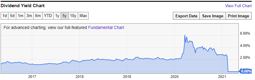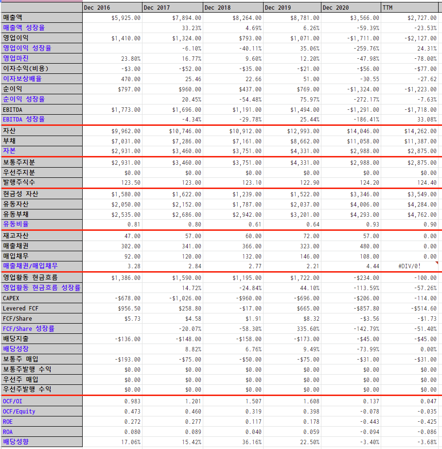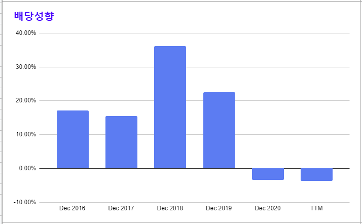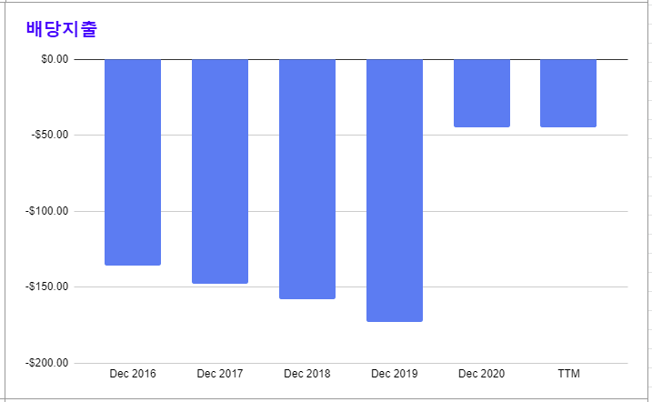 * 2021년 부터 배당이 중단된 모습이 확인된다.