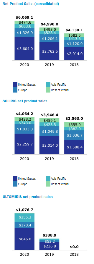 * 이 회사에서 판매하는 약품은 발작성 야간 혈색소뇨증과 이형성 용혈성 요독증 후군 치료제 '솔리리스'와 발작성 야간 혈색소뇨증 치료제 '울토미리스' 등을 개발 및 판매하는 회사이다.