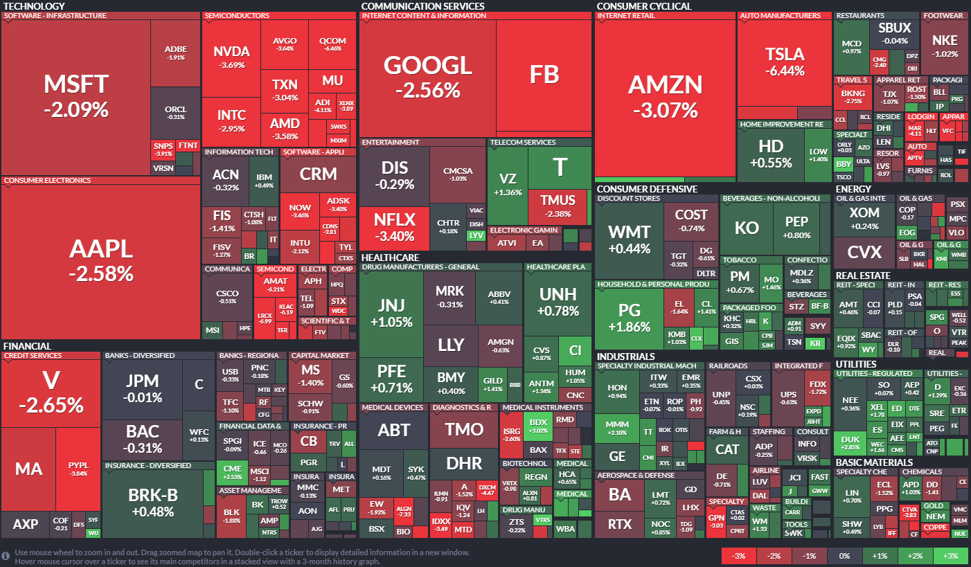 * 나스닥을 주도하는 기술 및 성장 주식들이 비교적 큰 폭으로 하락했다.