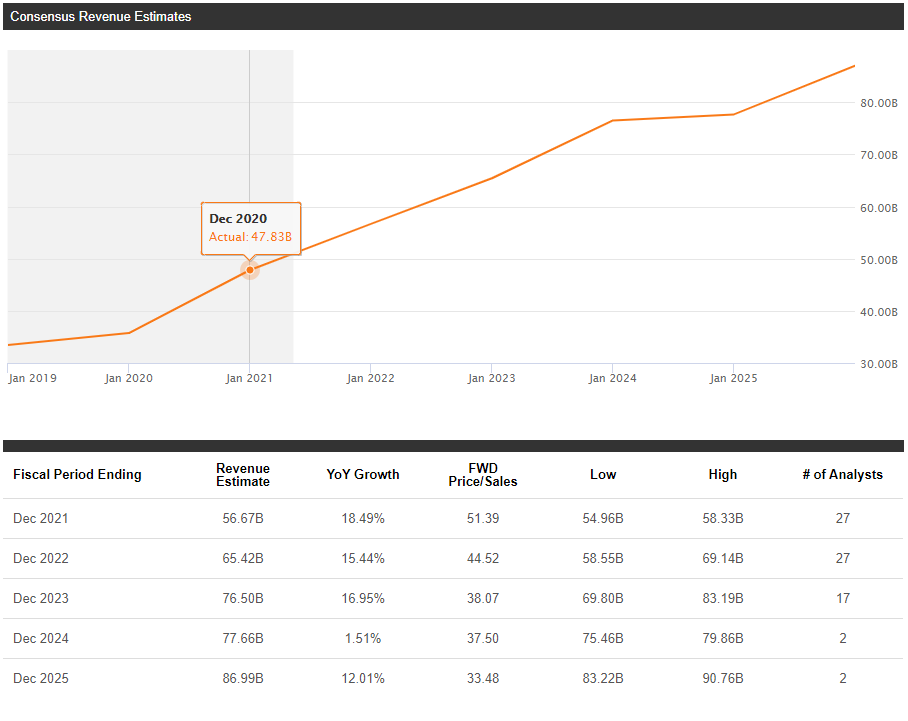 * 25명 이상의 애널리스트들은 올해 매출은 전년대비 18.49% 증가할 것으로 전망한다.