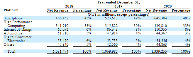 * 스마트폰용 반도체, 고성능 컴퓨터용 반도체 위탁 생산으로부터 대부분의 매출이 발생한다.