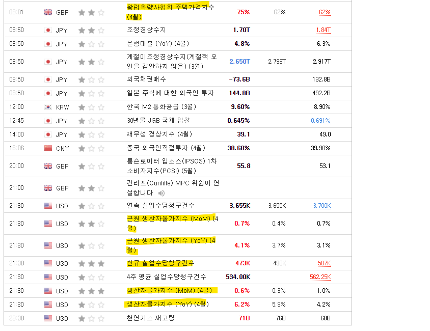 * 4월 미국의 PPI는 예측치를 상회하는 수준의 상승률을 보였다.