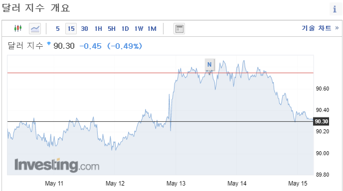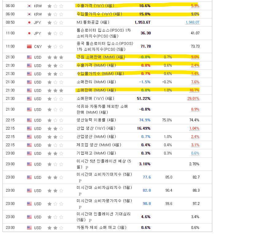 * 미국의 4월 근원 소매판매는 예상치에 못 미치는 수준으로 발표가 되었다(전월 대비 -0.8%). 또한 미국의 전월대비 소매판매는 1% 증가할 것으로 예상했지만 증가하지 않았다(0% 증가).