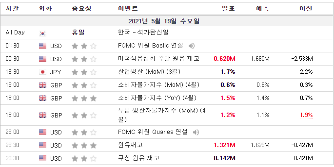 5. 4월 FOMC 회의록 : 연준은 급속한 경제 회복이 지속된다면 테이퍼링을 고려하는 것이 '어느 시점에서는 적절'하다는 내용이 있다.