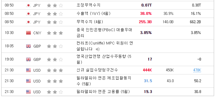 * 일본의 수출과 무역수지는 예측치보다 긍정적으로 발표되었다.