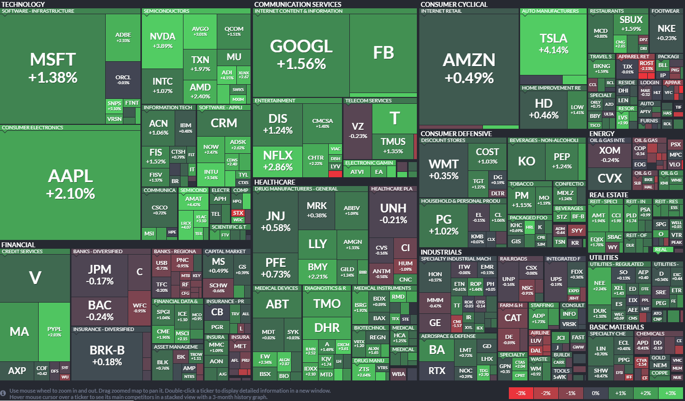 * 주요 지수 상승 마감, 대부분의 섹터가 상승 마감하였다.