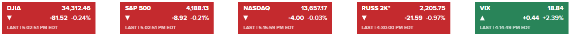 * 주요 지수 하락 마감. 나스닥은 약보합.