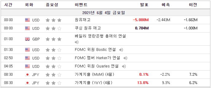 * 연준은 목표하는 고용지표에 따라서 6월 통화정책 회의에서 테이퍼링에 대한 논의가 시작될 수 있다는 시장의 우려가 커지고 있다.