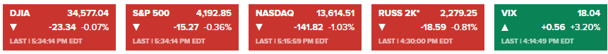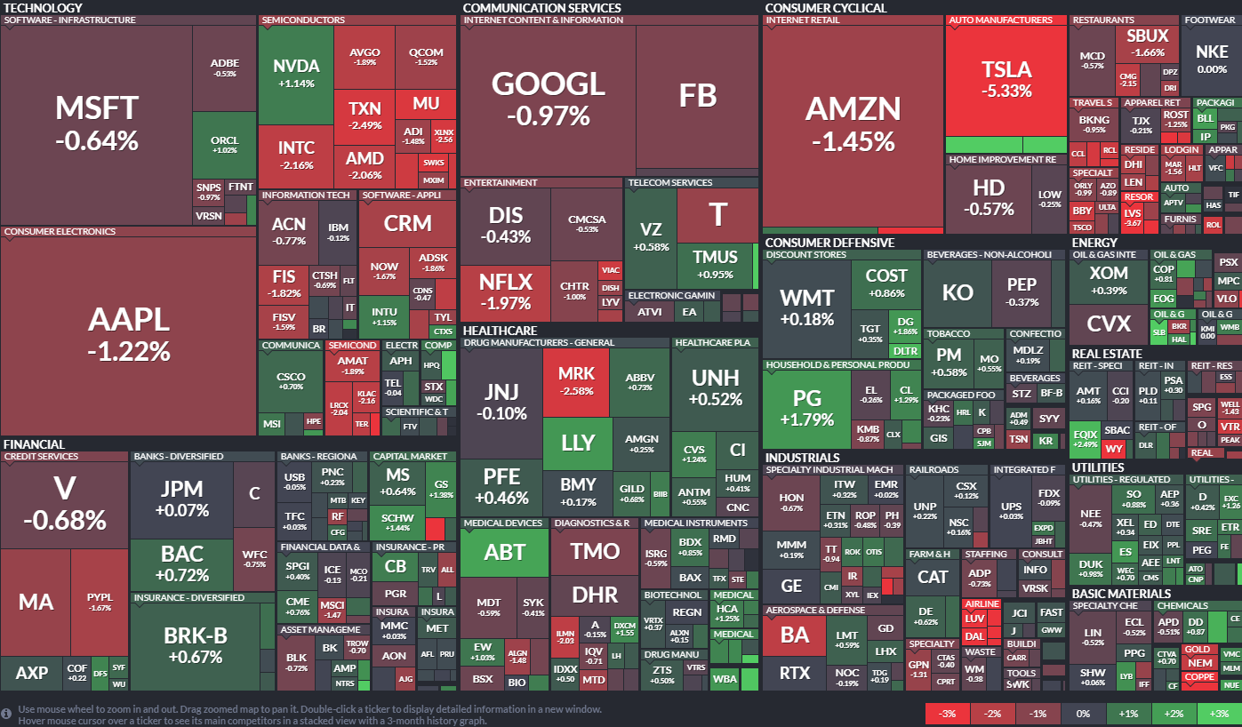 * 기술주 위주의 하락으로 나스닥이 비교적 큰 폭으로 하락했다.